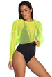 Make your next trendy move in this crop top! It features a crew neckline. long dolman sleeves. and a cropped hem. The top is composed of a sheer fishnet fabric with minimal stretch and offers a relaxed. oversize fit. Undergarment not included.